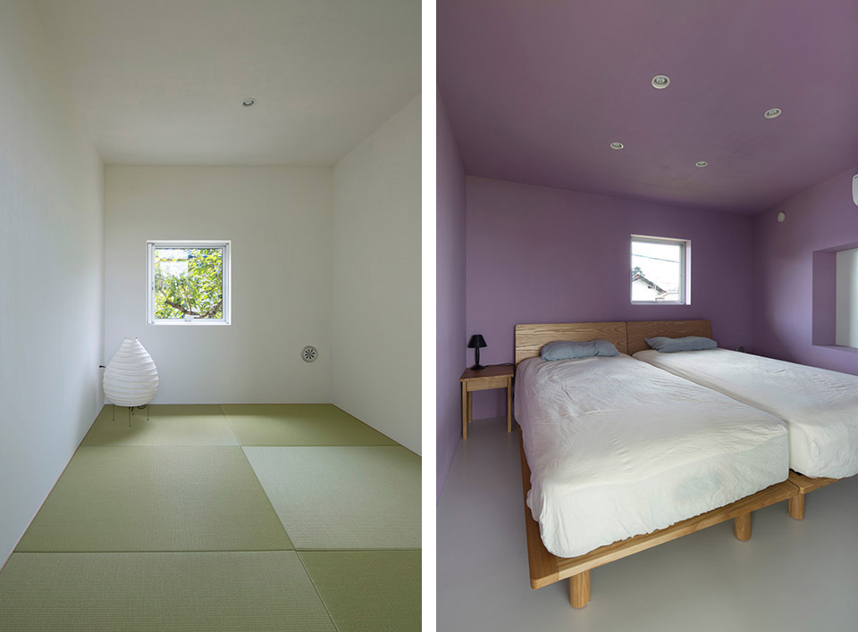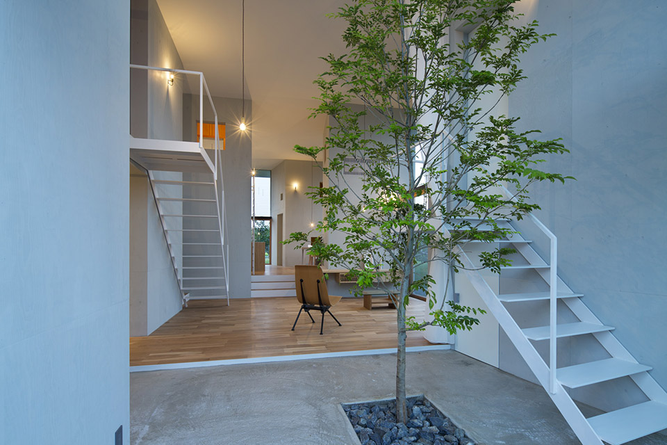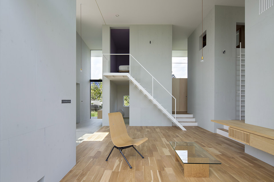 對自然開放,并受到果樹圍繞的室內(nèi)公共空間讓人感到開闊而放松。公共空間的室內(nèi)高度有兩層層高的尺度,為了利用結(jié)構(gòu)體的上層空間,每個都有專用樓梯到達(dá)上層,其中四個樓梯放置在公共空間中,還有三個爬梯分別放置在相對應(yīng)的結(jié)構(gòu)體自身中。