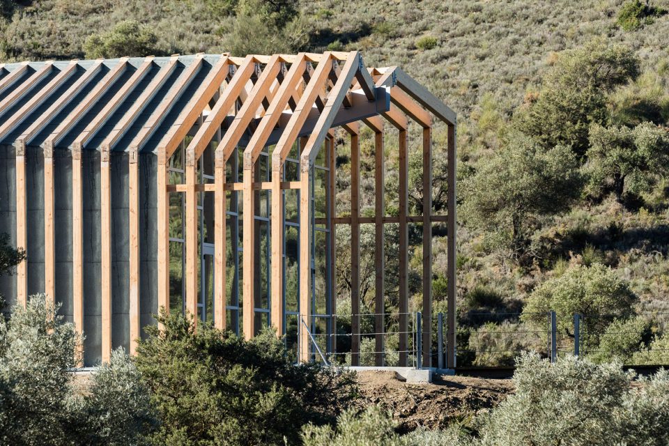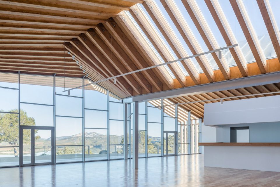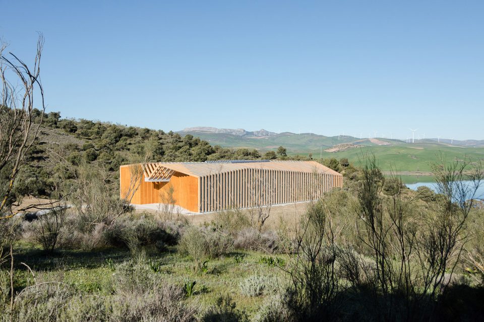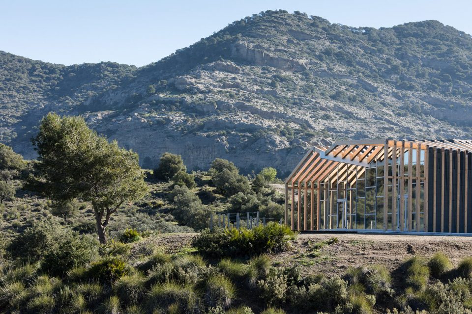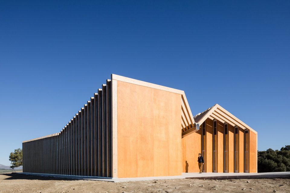 平行布置的木質(zhì)外框架形成了該建筑的主要特征,頂部的扭曲打破了嚴謹又富有秩序性的建筑外觀,創(chuàng)造了視覺的沖擊。外立面木結(jié)構(gòu)的夾縫間由木板加以防水涂層覆蓋,而末端縫隙則采用石板覆蓋。這種設(shè)計方式暗喻了峽谷的形成和對古道的解讀。建筑依靠光電板實現(xiàn)全部能源自給自足,并依靠Canadian well實現(xiàn)室內(nèi)通風(fēng)。