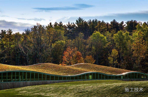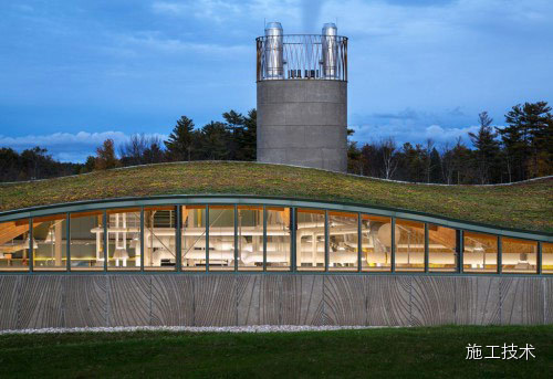 這個(gè)總面積達(dá)16500平方英尺的建筑屋頂由植被覆蓋而成,與周?chē)参锏念伾恢?,有利于建筑物與自然風(fēng)光相互協(xié)調(diào)。從某些角度,建筑幾乎消失于人們的視野 之中。當(dāng)?shù)刎S富的可再生建筑材料在整個(gè)建筑框架、桁架、欄桿、單板和木材復(fù)合板中都得到了充分應(yīng)用。欄桿是在當(dāng)?shù)厥崭睢⒀心?、烘干后進(jìn)行再裝配的。