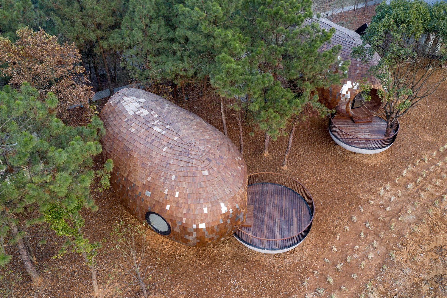 初始設計時,業(yè)主希望建筑采用擬態(tài)形式,與大自然的元素產(chǎn)生聯(lián)系。我們將住宿的感受、空間的特點、視線的方向等因素綜合思考,最終形成了種子木屋這種或許并不常見的建筑形態(tài)。
