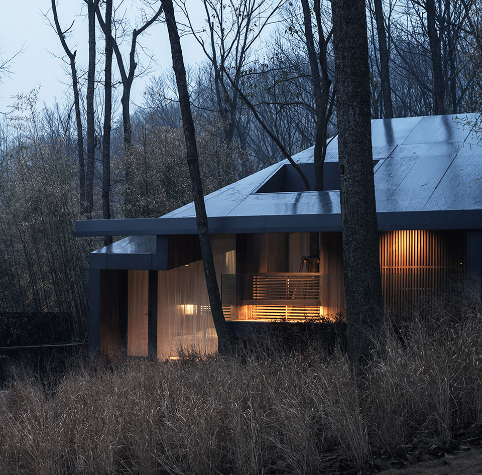 每個小屋中都保留了一棵場地原生的樹木,樹木所占據(jù)的空間成了屋中院,透過玻璃時刻于室內(nèi)生活相伴,是自然向建筑的反向滲透,屋中院也為室內(nèi)衛(wèi)生間提供了具有私密性的風(fēng)景。